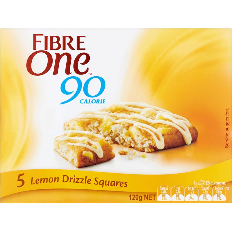 Have what you crave! an irresistible treat with a lemon flavoured pieces and lemon flavour drizzle that is high in fibre and only 90 calories! take a moment and treat yourself to a little guilt free indulgence with this lemon drizzle square.