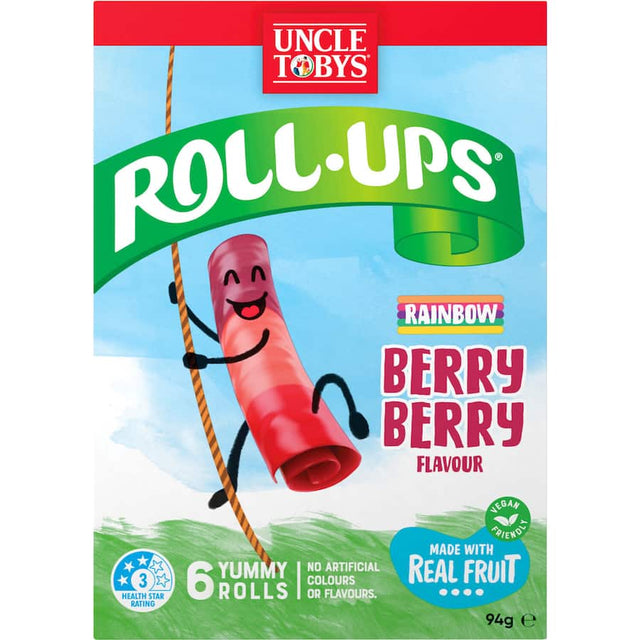 Uncle Tobys Roll-ups Fruit Snack Rainbow Berry Berry 6pk 94g