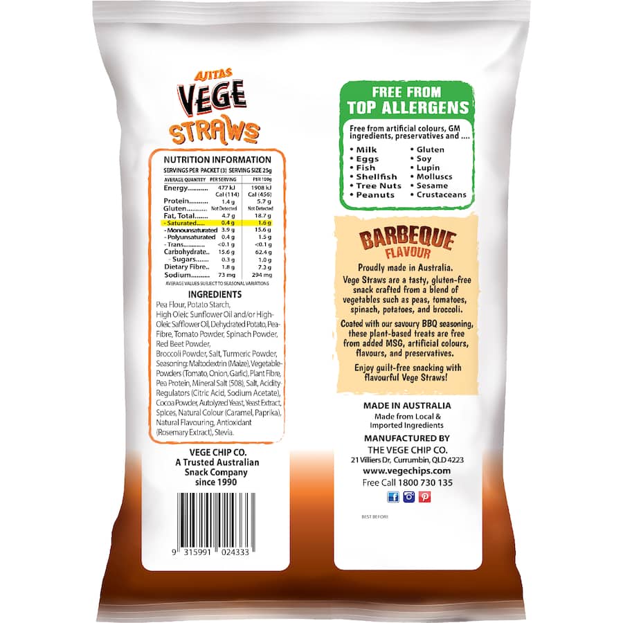 Introducing our Vege Chips Potato Straws in delightful Barbeque flavor! Each 75g bag is packed with crunch and deliciousness, perfect for satisfying your snack cravings without the guilt. These tasty veggie chips are made from premium potatoes, seasoned with an irresistible barbeque blend that delivers a smoky, tangy taste in every bite. Ideal for health-conscious snackers, our Vege Chips are gluten-free, low in calories, and free from artificial preservatives, making them the ultimate guilt-free indulgence. Enjoy these delightful potato straws on the go, as a party snack, or during movie nights with friends and family. Their crispy texture and bold flavor make them a favorite among both kids and adults. Whether you're looking for healthy alternatives to traditional chips or simply want a scrumptious snack, our Barbeque Vege Chips Potato Straws are the perfect choice. Dive into a bag today and experience the crunch you love, with all the flavor of your favorite barbeque seasonings. Snack smarter with Vege Chips – the crunchy, tasty snack that loves you back! Enjoy every moment with these delicious potato straws, which offer a satisfying crunch and a taste explosion that will keep you coming back for more. Satisfy your cravings and make snack time fun with Vege Chips Potato Straws Barbeque.
