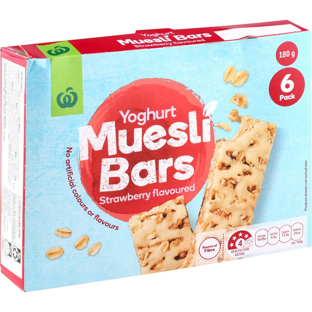 Woolworths yoghurt strawberry bar 6pk 180g these delicious yoghurt strawberry flavoured muesli bars make a convenient snack that you can enjoy at any time of the day. -with yoghurt drizzle on top.