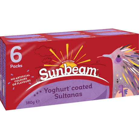 $16.90 AUDUnit price /UnavailableSunbeam Fruit Snack Yoghurt Coated Sultanas 180g 6 x 30g