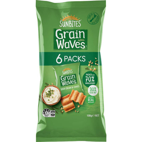 Sunbite Grain Waves Multipack Wholegrain Chips Sour Cream & Chives 108g 6pack