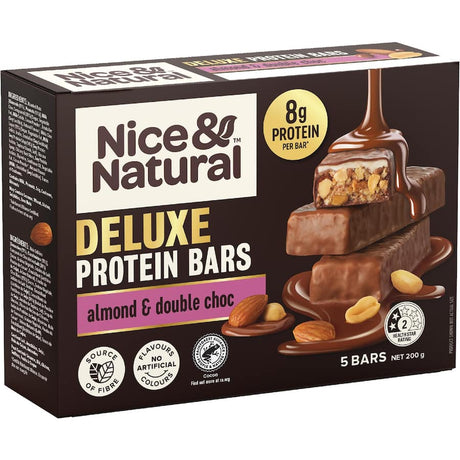 $6.90 AUDUnit price /UnavailableNice & Natural Deluxe Protein Bars Almond & Double Choc 5pk 200g