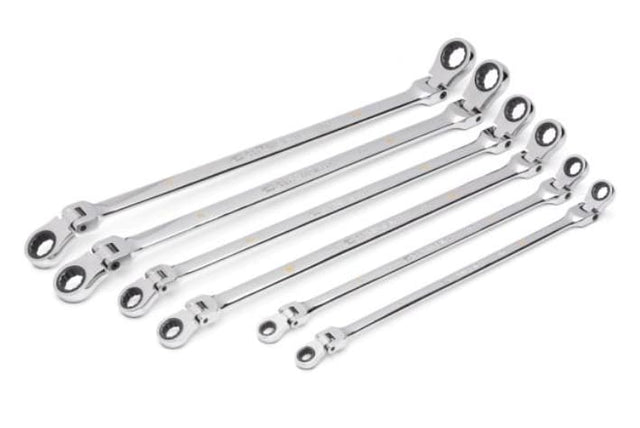 GEARWRENCH 90-tooth ratcheting wrench swing arc of just 4° turns fasteners in extremely tight spaces. Longer, wider beam delivers improved reach, leverage, and comfort. Large color-coded SAE/metric markings make size identification easy.