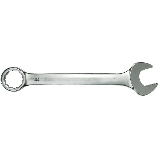 Introducing the Teng Combination Spanner 70mm, a must-have tool for both DIY enthusiasts and professional tradespeople. Made from high-grade Chrome Vanadium Steel, this robust spanner adheres to DIN3113A standards, ensuring long-lasting reliability and performance. Its unique design provides the same dimensions at both ends, offering versatility for a range of projects. The 12-point ring end is positioned at a precise 15° angle, allowing easy access to fastenings in tight spaces.