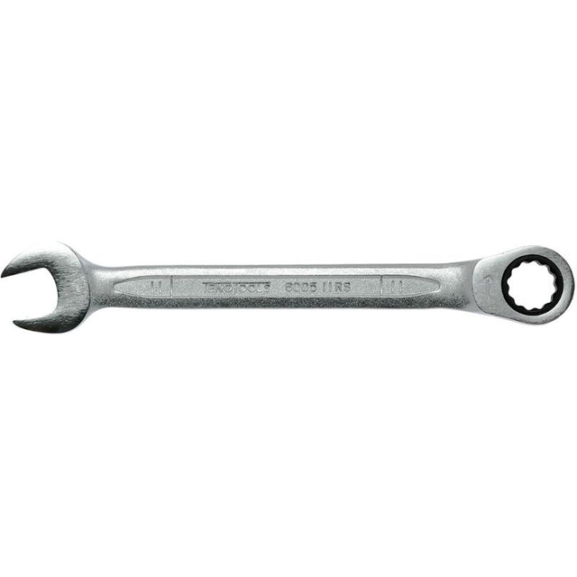 Introducing the Teng Ratchet Combination Spanner 11mm, an essential tool for every mechanic and DIY enthusiast! This straight flat type spanner features a robust 72-tooth ratcheting mechanism at the ring end, providing effortless turning and maximum torque. The 12-point ratcheting design ensures a secure grip, making it easy to tackle even the tightest spaces in your automotive or home projects. Both ends of the spanner are the same size, ensuring versatility for various applications. Crafted according to DIN899 standards, this spanner showcases outstanding durability and reliability for all your fastening needs.