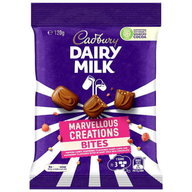 Cadbury Dairy Milk Marvellous Creations Bites in Dairy Milk milk chocolate. Explode onto the scene at your next get-together with the marvellous bites of Cadbury Dairy Milk Marvellous Creations.