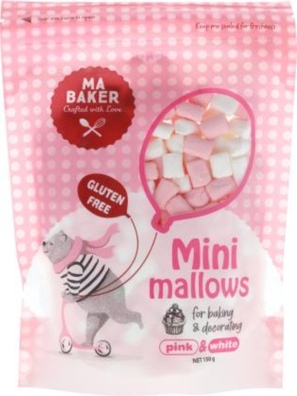 Indulge in the delightful fluffiness of Ma Baker Mini Pink & White Marshmallows, a perfect addition to your pantry essentials. Packaged conveniently in a 150g bag, these marshmallows are gluten-free, 99% fat-free, and promise 100% deliciousness, making them an ideal choice for health-conscious sweets lovers. Whether you're aiming to sweeten your hot chocolate, add a creamy topping to your ice cream, or bring a touch of whimsy to your baking projects, these versatile mini marshmallows elevate your culinary creations. Use them to decorate cakes and cupcakes or incorporate them into your favourite recipes for a pop of colour and texture. Not just for desserts, sprinkle them over your trail mix for a yummy twist, or add a dollop to yoghurt and fruit for a delightful treat. Perfect for skewering with fruits like strawberries and pineapple to make fun, fruity mallow kebabs. Originating from China, Ma Baker's Mini Marshmallows are a must-have for any kitchen, offering a blend of quality and irresistible softness that can turn any ordinary dish into a special delight. Stock up on Ma Baker Mini Pink & White Marshmallows and let your creativity fly with each fluffy piece!