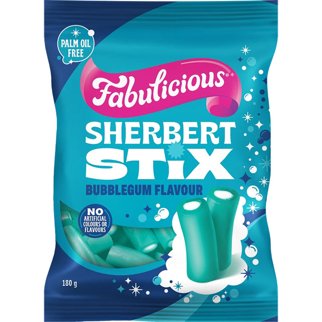 RJs Fabulicious Sherbert Stix Bubblegum 180g - Carton of 12