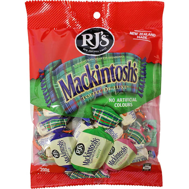 Indulge in the luxurious taste of Rj's Mackintosh's Toffee Deluxe 200g – the perfect treat for toffee lovers! This exquisite collection features a handpicked selection of six delightful toffees, each crafted from the finest ingredients to ensure a melt-in-your-mouth experience. Made with love and without any artificial colors, our toffee is perfect for those who appreciate genuine flavors. Whether you're treating yourself or looking for the ideal gift, Rj's Toffee Deluxe is sure to impress! Each bite reveals a rich, buttery texture balanced with a delightful sweetness that will transport your taste buds to new heights. Perfect for special occasions, movie nights, or simply as a delicious afternoon snack, this toffee is a must-have for your pantry. Packaged beautifully, it makes a thoughtful gift for birthdays, holidays, or just because. Experience the artisanal quality of Rj's Mackintosh and satisfy your sweet cravings with every piece. Order your 200g pack today and enjoy the comforting taste of quality toffee this season! Explore more delectable sweets and treats at Smartfox AU, your go-to destination for gourmet treats and confectionery delights. Treat yourself to the elegance and tradition that Rj's Mackintosh brings to every bite of their toffee and discover why this treat is a favorite among sweet tooths everywhere.