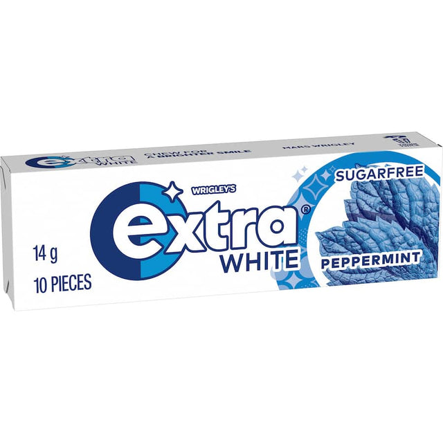 Experience the refreshing taste of Wrigley’s Extra Chewing Gum White, perfect for those who want to elevate their oral health while enjoying a delicious flavor. This sugar-free gum offers a burst of invigorating white peppermint, making it an ideal choice for freshening breath at home or on the go. Wrigley’s Extra not only satisfies your sweet cravings but is also clinically proven to enhance oral hygiene. With every chew, you help maintain a healthy pH balance in your mouth, effectively neutralizing plaque acids that can harm teeth. Ideal for you and your family's dental care routine, Wrigley’s Extra Chewing Gum White helps remove food particles that may get stuck between teeth and gums, promoting cleaner, healthier smiles. Additionally, the unique formula works to naturally remineralize teeth by utilizing the minerals found in saliva, contributing to overall dental health. The New Zealand Dental Association recommends incorporating sugar-free gum like Wrigley’s Extra into your daily routine after meals or snacks, making it a smart choice for maintaining a bright, fresh smile. Whether you are at your desk, in your car, or out with friends, Wrigley’s Extra White Peppermint Gum is the perfect companion for those who value their oral health. Enjoy the combination of delectable flavor and dental benefits — your mouth will thank you!