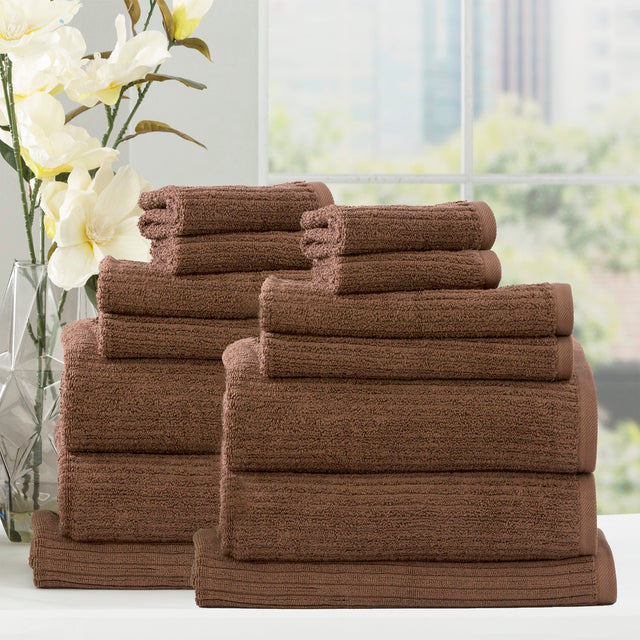 Renee Taylor Cobblestone 650 GSM Cotton Ribbed Towel Packs 14 Piece Toffee