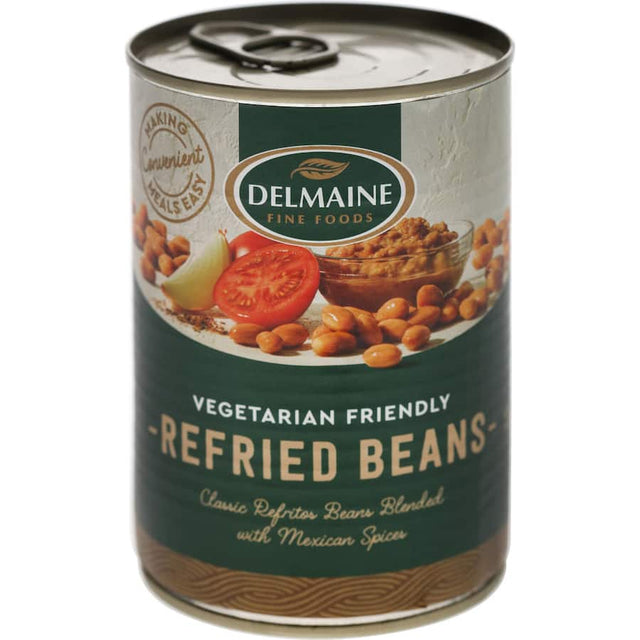 Delmaine Beans Refried offer a rich, thick bean paste that elevates your meals with its authentic flavor and spices. Perfectly crafted for use in traditional Mexican dishes, this versatile ingredient is ideal for burritos, tostadas, and nachos. Beyond Mexican cuisine, our refried beans can enhance casseroles, stews, and soups, making them a delicious addition to your pantry. Enjoy the convenience of Delmaine Beans as a tasty filling for wraps or as a hearty vegetarian side dish. Whether you're seeking an alternative to meats or looking to create flavorful vegetarian recipes, Delmaine Beans Refried are the perfect solution. With their smooth texture and robust taste, every bite will transport you to a world of culinary delight. Savor the convenience and quality of Delmaine Beans in your home cooking, making mealtime simple yet satisfying. Stock up on Delmaine Beans Refried today and discover endless possibilities for delicious meals that everyone will love. Suitable for various dietary needs and perfect for those who appreciate authentic flavors in their cooking. Elevate your dishes and impress your family and friends with this must-have ingredient in your kitchen.