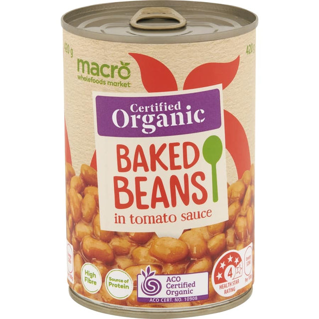 Looking for wholesome goodness? Savor the flavor of Macro Organic Baked Beans in Tomato Sauce. Our beans are packed with organic goodness, offering a convenient and nutritious meal option. Rich in protein and fiber, our baked beans are a scrumptious source of plant-based nutrients. Whether enjoyed on toast or as a hearty side dish, these beans are perfect for the health-conscious foodie. Say goodbye to artificial additives with our clean-label recipe. Ideal for vegans and vegetarians, these beans are a delicious way to boost your daily veggie intake. Buy your can of Macro Organic Baked Beans today and indulge in organic, plant-powered goodness!