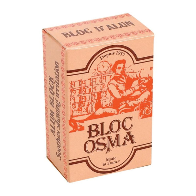 Discover the rejuvenating power of the #505 OSMA ALUM BLOCK, a premium 75g skincare essential for every wet-shaver's grooming kit. This 100% Pure Alum, crafted in France, is highly regarded for its natural astringent properties, soothing the skin after shaving. The OSMA ALUM BLOCK not only helps to eliminate irritation but also effectively stops nicks and cuts from bleeding, making it an indispensable tool for achieving a smooth, irritation-free shave. Ideal for all skin types, particularly normal to oily skin, this versatile alum block can also be used as a skin toner, enhancing your skincare routine. With proper care, a single OSMA ALUM BLOCK lasts for months, providing long-lasting value and efficacy. Whether you're a seasoned shaver or just starting, the #505 OSMA ALUM BLOCK is the perfect companion to elevate your grooming experience. Incorporate this natural mineral into your routine and enjoy its myriad benefits, from post-shave relief to skin tightening and soothing astringent effects. Upgrade your shaving game with the trustworthy OSMA ALUM BLOCK today.