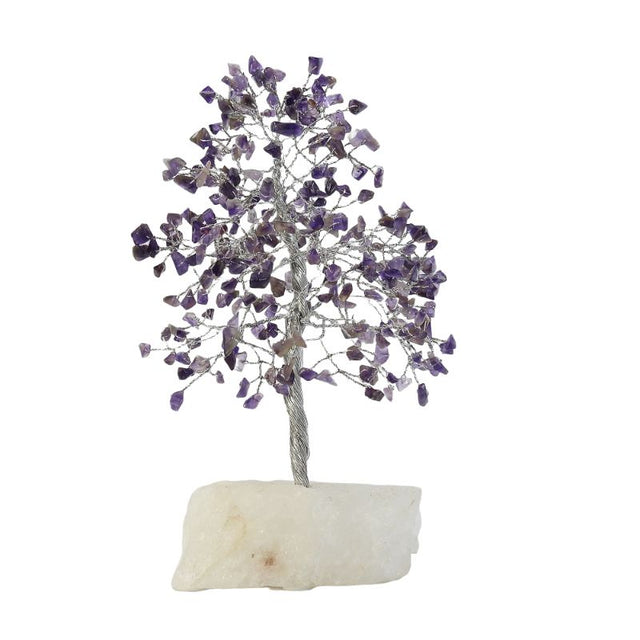 H:25 cm - Amethyst 300 chip gem tree with a natural White Jade Base. Made from real gemstones, a wish tree is one-of-a-kind hand crafted piece.