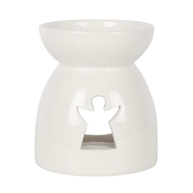 H:11 x W:10 x D:10 cm - This simple and understated oil burner and wax warmer comes in a crisp white that suits a wide variety of decor styles. An angel cut out makes a sweet added touch that will be loved by many. Compatible with fragrance oils and wax melts.