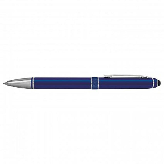 Twist action aluminium ball pen with a shiny anodised barrel, shiny chrome accents and a stylus for use with touch screens. It has a black large volume refill with 800 metres of writing ink.