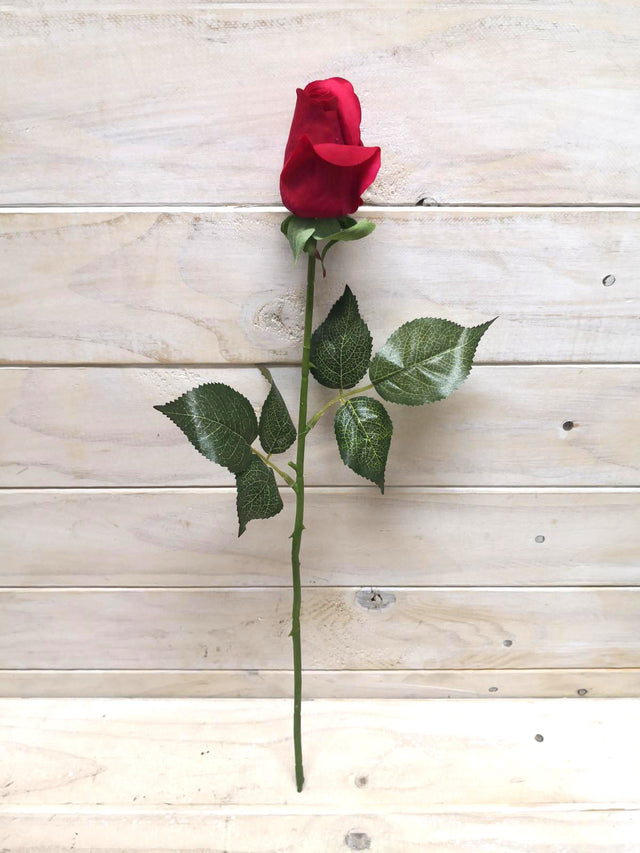 Artificial Flower -Rose - Real Touch Rose Bud Stem RED