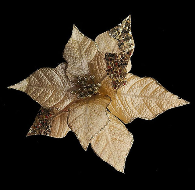 Artificial Poinsettia w/Sequins - Glittered (Gold)
