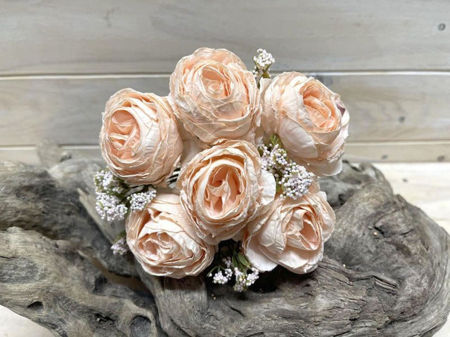 Artificial Rose Posies - Dry Look with 6 Flowers (Peach)