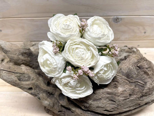 Artificial Rose Posies - Dry Look with 6 Flowers (White)