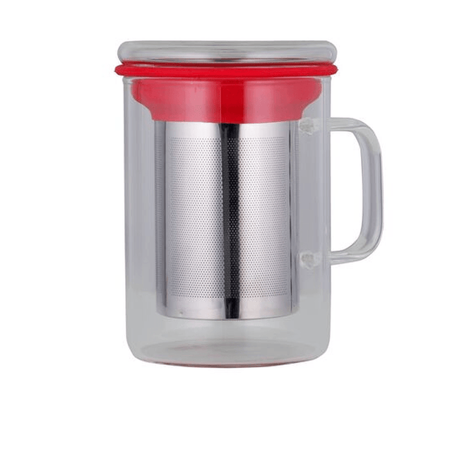 Avanti Tea Mug with Infuser is crafted from heat-resistant borosilicate glass that lets you can view the tea as it is steeping. It comes with a stainless steel laser etched infuser with fine mesh to ensure the maximum flavor and infusion of your favorite tea, be it lose or in a bag. The infuser features a large opening to make pouring boiling water into it easy and a silicone-covered rim to ensure no heat escapes while steeping. The red lid doubles as a coaster for the infuser once the tea is steeped.