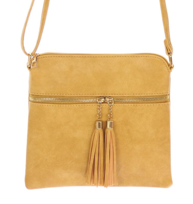 Bag - Lara Zip Front With Tassles - MUSTARD