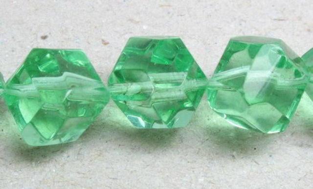 Beads - Glass Faceted Beads - 10mm 3beads Faceted Diag Cube - Set of 3 GREEN