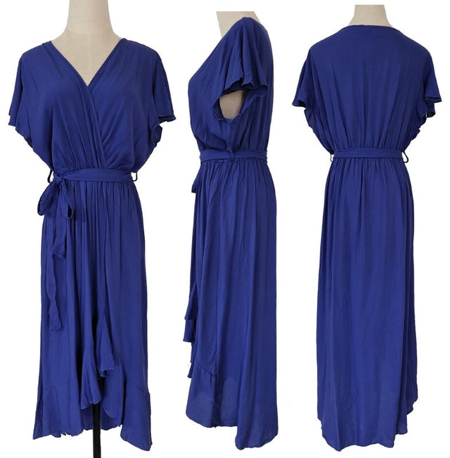 Bias Cut Hemline Dress - LARGE COBALT