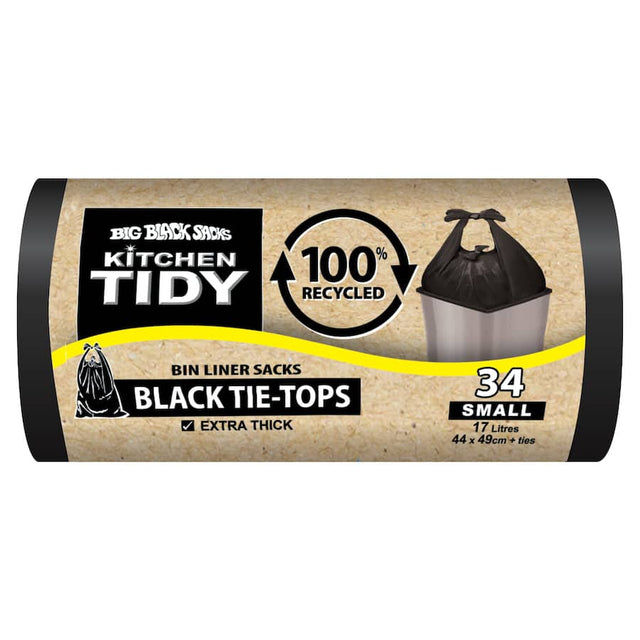 Big Black Sacks Kitchen Tidy Liners 100% Recycle Black Tie Small 34pack
