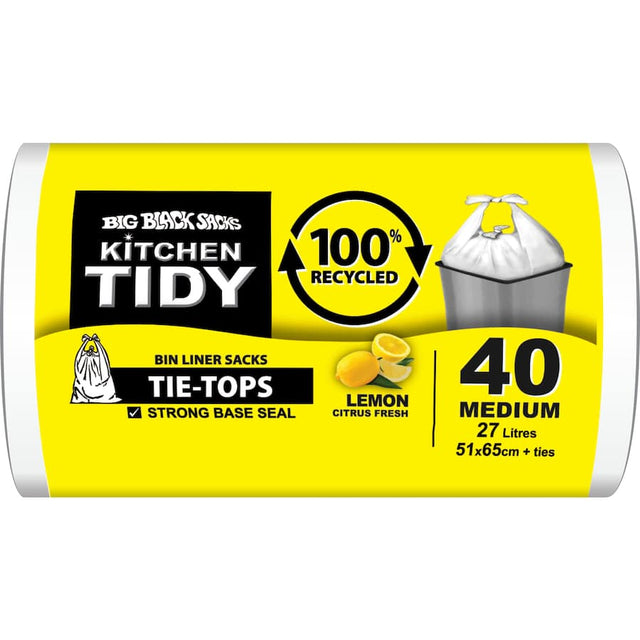 Big Black Sacks Kitchen Tidy Liners 100% Recycled Lemon White Med 40pack
