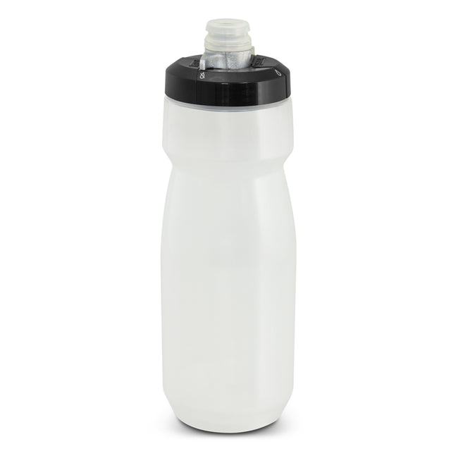 Stay hydrated wherever the trail takes you with the superb Podium 700ml drink bottle which has been designed by the Camelbak team to fit most bicycle bottle holders. The bottle is manufactured from BPA-free, low density polyethylene and the easy squeeze construction ensures maximum hydration with minimal effort. Podium has a secure screw on lid that features a high-flow, self-sealing drinking valve that maximises water flow and eliminates spills. It is easily removed for cleaning and has a locking mechanism to prevent leaks when the bottle is not in use. Podium is presented with an attached card that contains care information and the Got Your Bak lifetime guarantee information. This product is not dishwasher safe and handwashing is recommended.