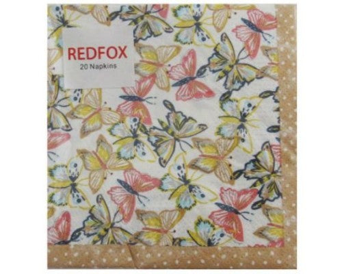 Our REDFOX cocktail paper napkins/serviettes are perfect for parties, bbqs or everyday use at home. 3-ply in packs of 20. 25 x 25 cm.
