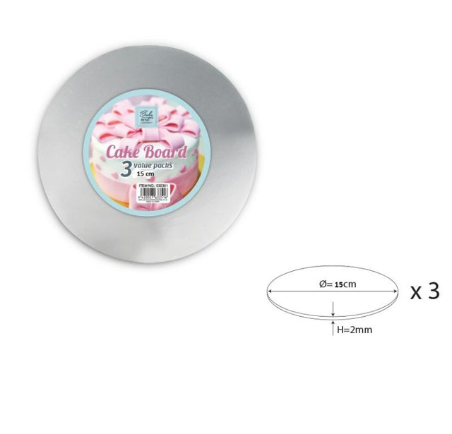 Cake Board - Bake Art Silver 2mm 15cm x 3's (24 Packs)