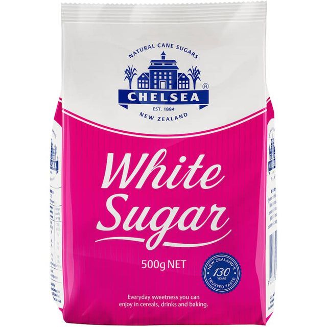 Introducing the Chelsea White Sugar Bag 500g, your perfect companion for elevating every sweet recipe. This premium white sugar is meticulously refined to ensure the finest quality and consistency, making it an essential ingredient for bakers and home cooks alike. Whether you are preparing cakes, cookies, or pastries, Chelsea White Sugar delivers a sweet taste that enhances flavors wonderfully. Ideal for sweetening beverages, or as a delightful addition to your favorite desserts, this 500g bag is perfectly designed for convenient everyday use. With its easy-to-pour packaging, you can effortlessly measure the right amount for any recipe. Chelsea White Sugar is not just about sweetness; it's about achieving that perfect texture and moisture that only high-quality sugar can provide. Plus, it’s perfect for all your festive baking needs—whether it’s a holiday treat or a birthday cake, Chelsea White Sugar will be your go-to choice. Experience the difference of using refined sugar that is versatile, easy to blend, and blends seamlessly into both wet and dry mixtures. Add a bag of Chelsea White Sugar 500g to your kitchen pantry today and transform your culinary creations with the goodness of pure white sugar.