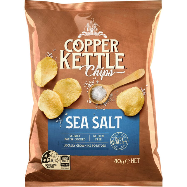 Discover the delightful crunch of Copper Kettle Chips Sea Salt 40g, where quality meets flavor in a perfect snack. Made from premium locally-sourced potatoes, these hand-cooked chips are carefully crafted to deliver a rich, satisfying taste that is enhanced by just the right sprinkle of sea salt. Our Copper Kettle Chips are free from artificial flavors and preservatives, ensuring you indulge in a clean, wholesome snack experience. Each bag contains 40g of these crispy delights, making them perfect for sharing, lunchboxes, or enjoying straight from the bag during a movie night. Whether you crave a savory snack for your afternoon break or an accompaniment to your favorite dips, these sea salt kettle chips provide the perfect balance of flavor and crunch. Satisfy your snack cravings today with Copper Kettle Chips - a gourmet chip experience that elevates your snacking game! Ideal for lovers of gourmet snacks, these chips are a must-try for anyone looking for a premium potato chip experience. Grab your bag now and taste the difference in every crispy bite!