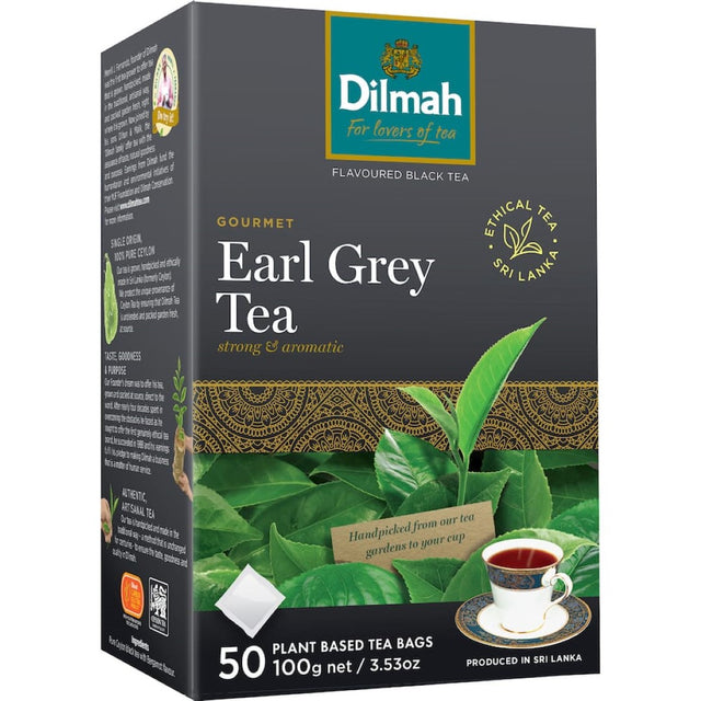 Indulge in the sublime essence of Dilmah Tea Earl Grey Tagless - a premium blend of pure Ceylon single-origin Earl Grey tea. Each box contains 50 tagless tea bags filled with the perfect harmony of sweet floral notes and zesty citrus from the essence of bergamot. Grown in the Ratnapura region, this classic Earl Grey pairs bold Ceylon tea with aromatic bergamot for a truly refined tea experience.
