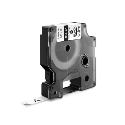 Dymo 18482 Rhino Permanent Polyester Label, 9mm x 5mt, Black on White