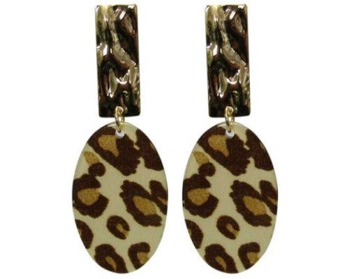 Pierced Earrings - Post – Jax Leopard Foil. 925 sterling silver hypoallergenic earring posts. 5.7 x 2.3 cm.