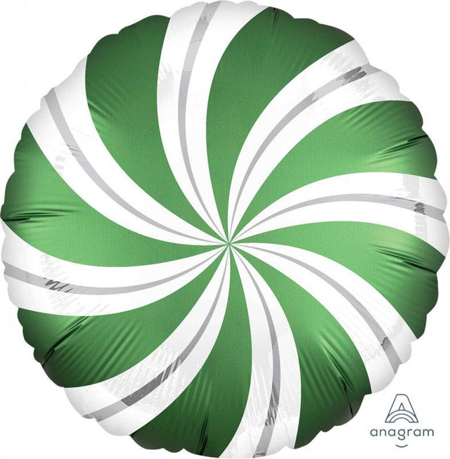 Foil Balloon - 45cm Standard Satin Xl Emerald Green Candy Cane Swirls