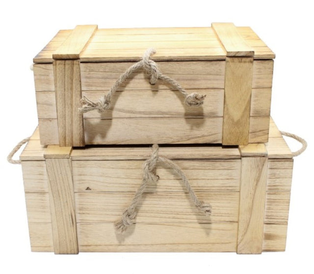 Natural Wooden Crate with Ropes Set of 2. 1)42 x 30 x 18cm 2)36 x 26 x 14.5cm.