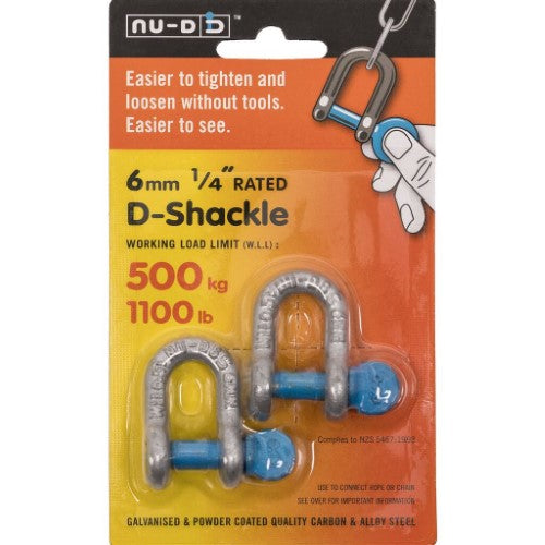 NU-D D Shackle Easy Tighten/Loosen Galvanised Tested 500Kg 6mm Twin Pack