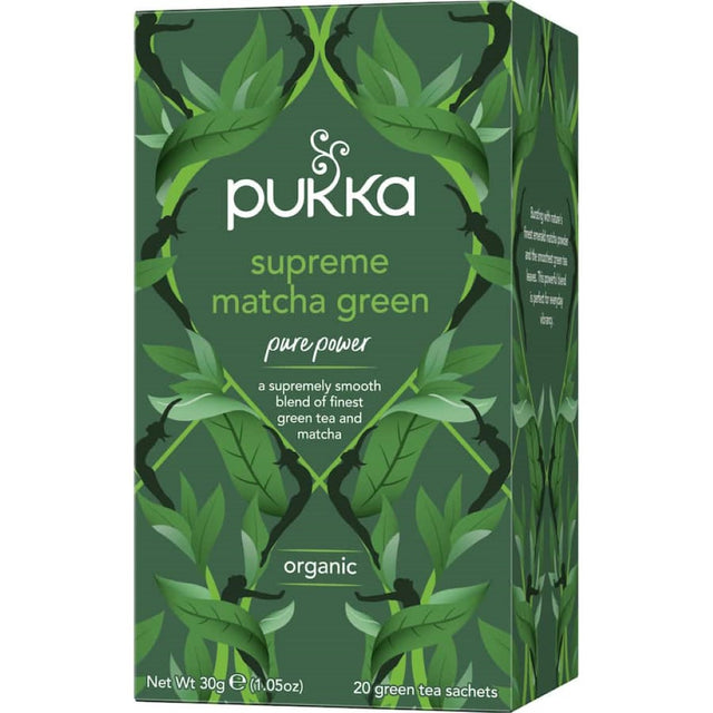 Elevate your wellness routine with Pukka Green Tea Supreme Matcha, a premium blend crafted for those seeking vitality and balance. This exquisite green tea combines the rich, vibrant flavor of matcha powder with carefully selected green tea leaves, creating a powerful infusion that supports both your mind and body. Each cup of Pukka Green Tea Supreme Matcha is meticulously formulated using the latest scientific research and traditional herbal wisdom, ensuring that you receive the maximum benefits from every sip. Our ethically sourced and organically grown ingredients deliver essential oils and nutrients that invigorate your senses and promote overall wellness. Perfect for daily consumption, this soothing green tea blend encourages clarity and focus, making it an ideal choice for busy lifestyles. With every compostable tea bag, you're not just enjoying a refreshing drink; you're nurturing your health and well-being. Boost your energy and nourish your spirit with Pukka Green Tea Supreme Matcha—a delightful way to keep your spark alive. Treat yourself to the experience of upliftment and hydration with this premium green tea blend, designed to surpass your expectations and harmonize with your daily routine. Experience the essence of natural vitality today with Pukka Green Tea Supreme Matcha at Smartfox AU, your go-to store for sustainable and health-focused products.