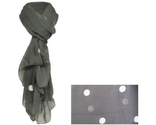 Perfect for elevating casual ensembles or accessorizing an elegant outfit, the Scarf - Dots on Pewter can be paired beautifully with your favorite coats or sweaters. Whether you're heading to work, enjoying a night out, or simply lounging at home, this scarf adapts seamlessly to your lifestyle. Searching for the ideal gift? Look no further—this fashionable scarf is a thoughtful choice for friends and family who cherish chic accessories. With its timeless style and unique design, it promises to become a staple in any wardrobe. Shop now to add this must-have scarf to your collection and embrace the charm of polka dots today!