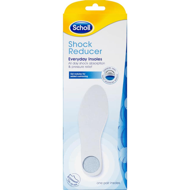 Experience unparalleled comfort with Scholl Insoles Daily Shock Reducer, designed to alleviate foot fatigue and reduce impact with every step. As one of the top-rated orthotic insoles on the market, these insoles provide the perfect balance of support and cushioning. Whether you're standing for long hours, enjoying a day out walking, or engaging in sports activities, Scholl Daily Shock Reducer Insoles are your ultimate solution for comfort. These insoles are particularly beneficial for individuals suffering from plantar fasciitis, heel pain, or general foot discomfort, thanks to their innovative shock-absorbing technology. Made with high-quality, breathable materials, they ensure your feet feel fresh and supported throughout the day. Upgrade your footwear with Scholl Insoles and step into a world of comfort and relief. Perfect for all types of shoes, these insoles are easy to trim to fit your favorite pair. Trust Scholl, a leader in foot care solutions, and invest in your foot health today. Shop now at Smart! Your feet deserve the best treatment!