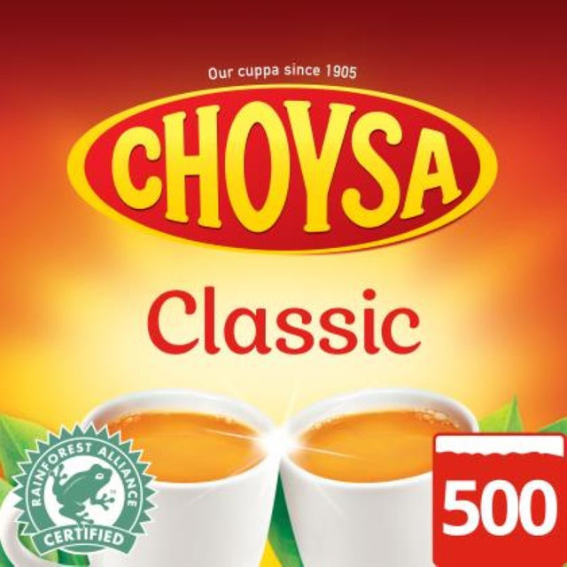 Choysa tea was first introduced to New Zealand by Auckland's Bond brothers in 1905 and it has become an iconic Kiwi brand. Made from the blends of the finest small leaf tea to create a rich, full flavour black tea with a refreshing aroma. This pack of 500 traditional square Choysa teabags is ideal for small offices, restaurants & cafe's and catering.