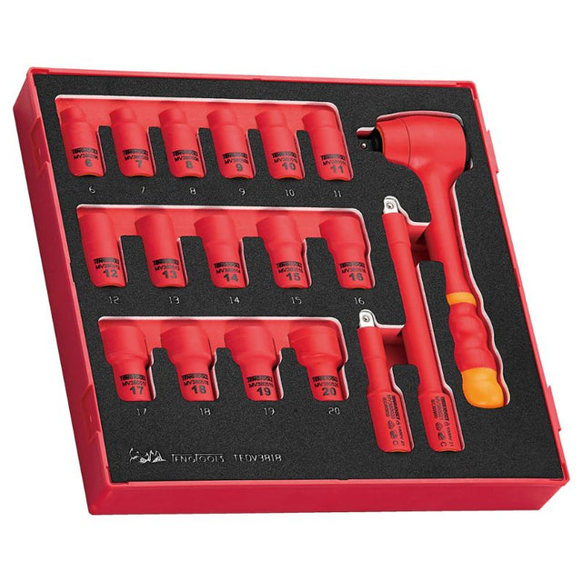 Teng 18pc 1000V VDE 3/8in Dr. Insulated Socket Set- TED-Tray