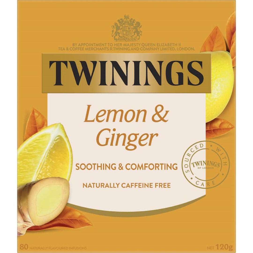 Twinings Flavoured Herbal Infusions Lemon & Ginger is naturally caffeine free. Warming & comforting!