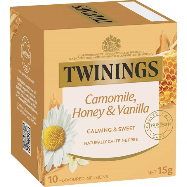Twinings Flavoured Herbal Infusions Bags Camomile, Honey & Vanilla is naturally caffeine free. Soothing & delicate.
